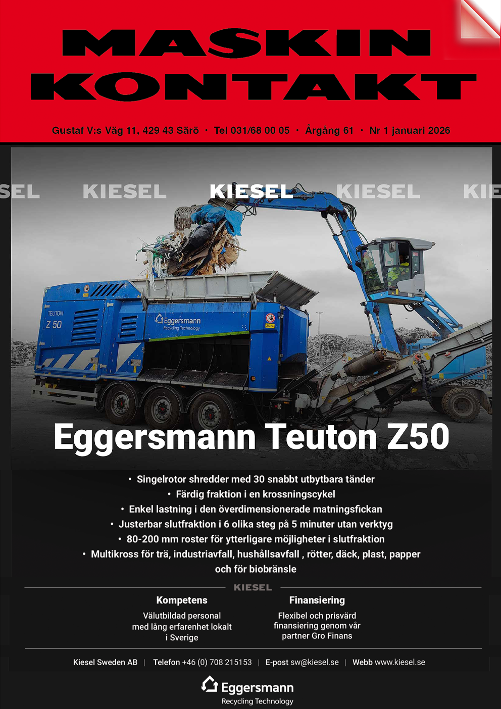 BESTÄLL NYHETSBREVNästa nummer av Maskinkontakt kommer den 11 februari 2026. Vill du läsa tidigare nummer ? Klicka här! Maskinia förstärker eftermarknaden i Kalmar- och Ölandsregionen med Kalmar Lastbil & MaskinNy halvö är på plats i Göta Älv – se hur den växte framKomatsu tar nästa steg inom tunga dumprar – lanserar nya HM460-6E0RF-system flyttar till skånska SösdalaBrokk AB avslutar samarbete med Toyota Material Handling i ArlövNEVO Maskin AB får ny VD och lanserar ny hemsidaSvevia får förnyat förtroende för brounderhåll i SkåneInfrakraft uppgraderar 22 kilometer järnväg mellan Åstorp och HelsingborgEpiroc lanserar nya PowerROC T45IVL visar vägen för återvinning av kritiska metaller ur gruvavloppsvattenEuropas första etablerade lösning för cirkulär hantering av elfordon och batterierMetsä Group skapade hundra nya brandmiljöer i de finländska skogarnaVersalifts serviceupplägg ger Lejmin trygghet i vardagenJOAB dubblar kapaciteten för sopbilstillverkningHelelektriska Terberg RT253EV omdefinierar RoRo-transport19 december, 2025Maskinia breddar servicen i Göteborg – återupptar samarbetet med Steens T&E18 december, 2025Stort intresse för SANYS elektriska hjulgrävare – tre SY1758EW sålda innan lansering*11 december, 2025Kolstad har levererat tre containertrailrar med helt ny teknik till Halléns Transport i Göteborg11 december, 2025Manitou kommer med två nya teleskoplastare för lantbruket – mer kraft – mer robusta11 december, 2025Stabil restaurering med Leca lättklinker, när El Castro-viadukten hade rasat11 december, 2025Farmers First är ny importör av KIOTI-traktorer, UTV:er med mera i Sverige11 december, 2025Nya dumpern Volvo A45 blev en win-win för VSM Entreprenad i Garpenberg11 december, 2025Nokian Tyres lanserar smart däckteknik som ska öka produktiviteten och skydda mark i jordbruket11 december, 2025Två Liebherr bandgrävare möttes vid vägbygge i Tyskland. 55 års teknisk utveckling skiljde dem åt11 december, 2025Maskinstyrning förändrade arbetsvardagen för Tuna Entreprenad DEVELON – upptäck nya 9-serien av bandgrävare KAMPANJ på Vikplog VM-2800 och SAMI 250-63 NOVACOM – Komradio för entreprenörer Beställ nyhetsbrev!