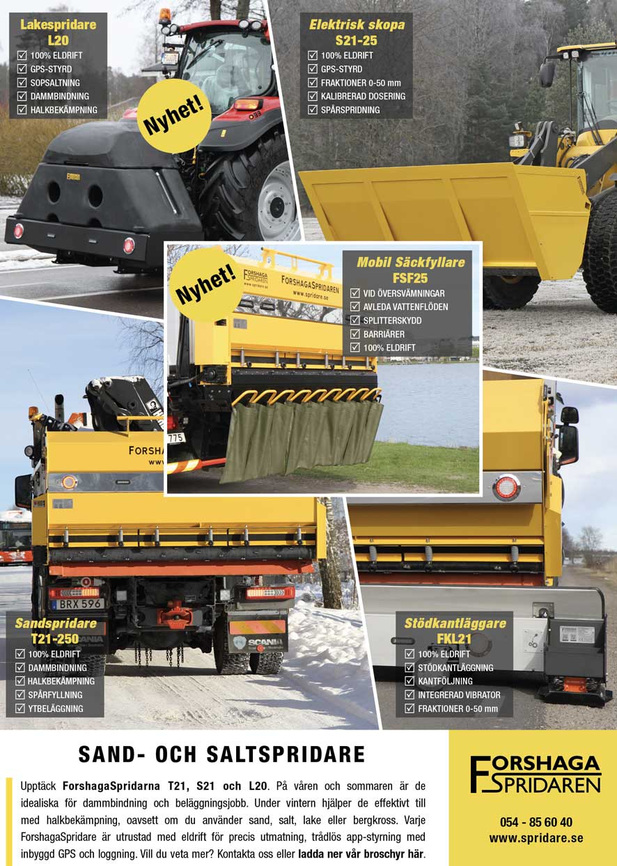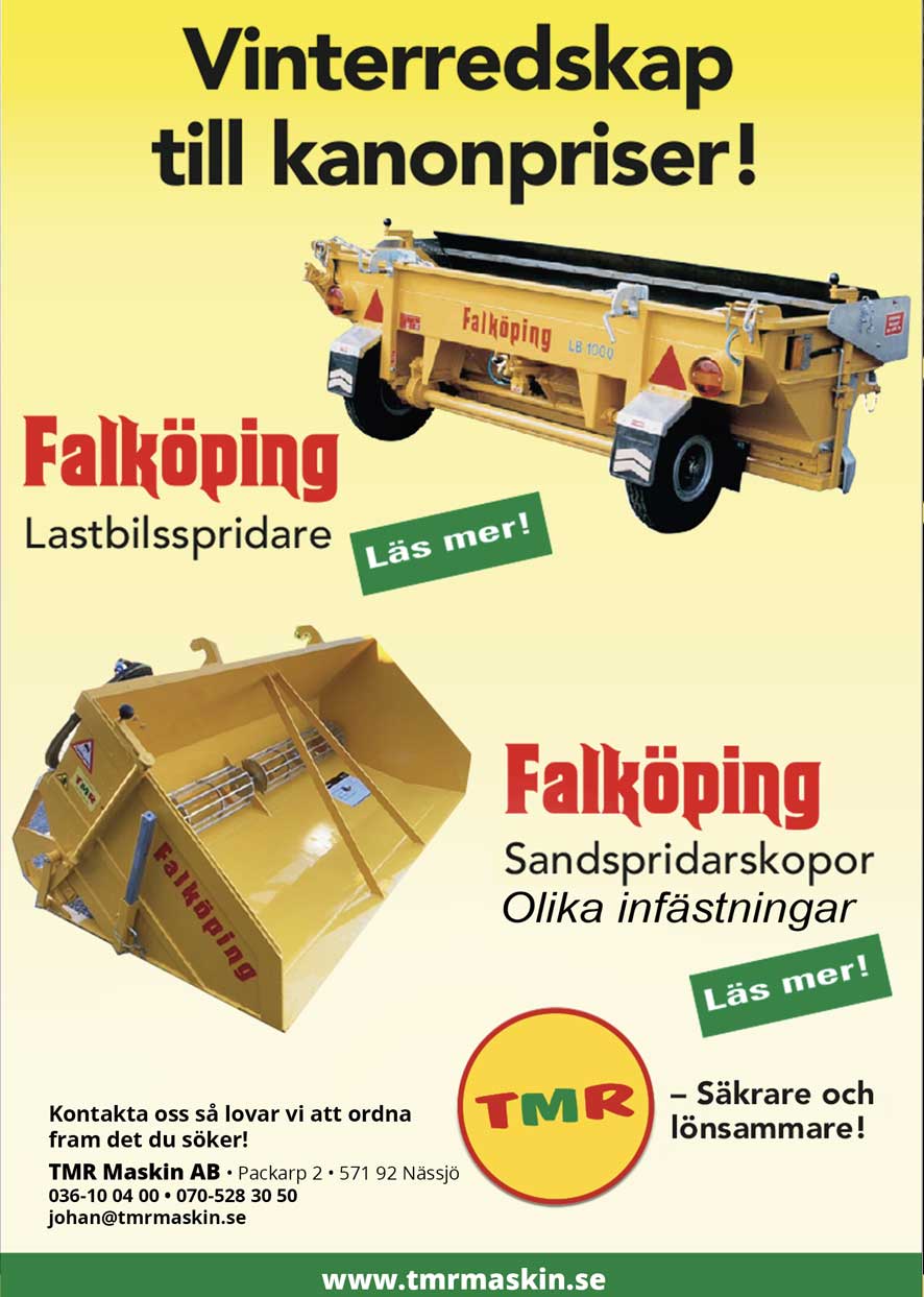 Sandspridare, saltspridare, sopmaskiner, sopvalsar, snöplogar, sidovingar, snöfräsar m.m.