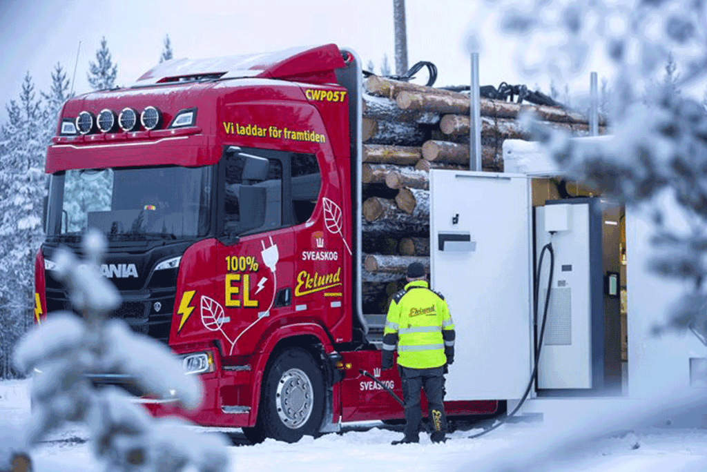 Under november har Eklunds Åkeri börjat köra den nya elrundvirkesbilen som har tagits fram av Scania. Bilen går i södra Norrbotten och norra Västerbotten, ett område präglat av längre transportavstånd, glest utbyggd laddinfrastruktur och ett utmanande klimat under en större del av året, jämfört med de södra delarna av Sverige.